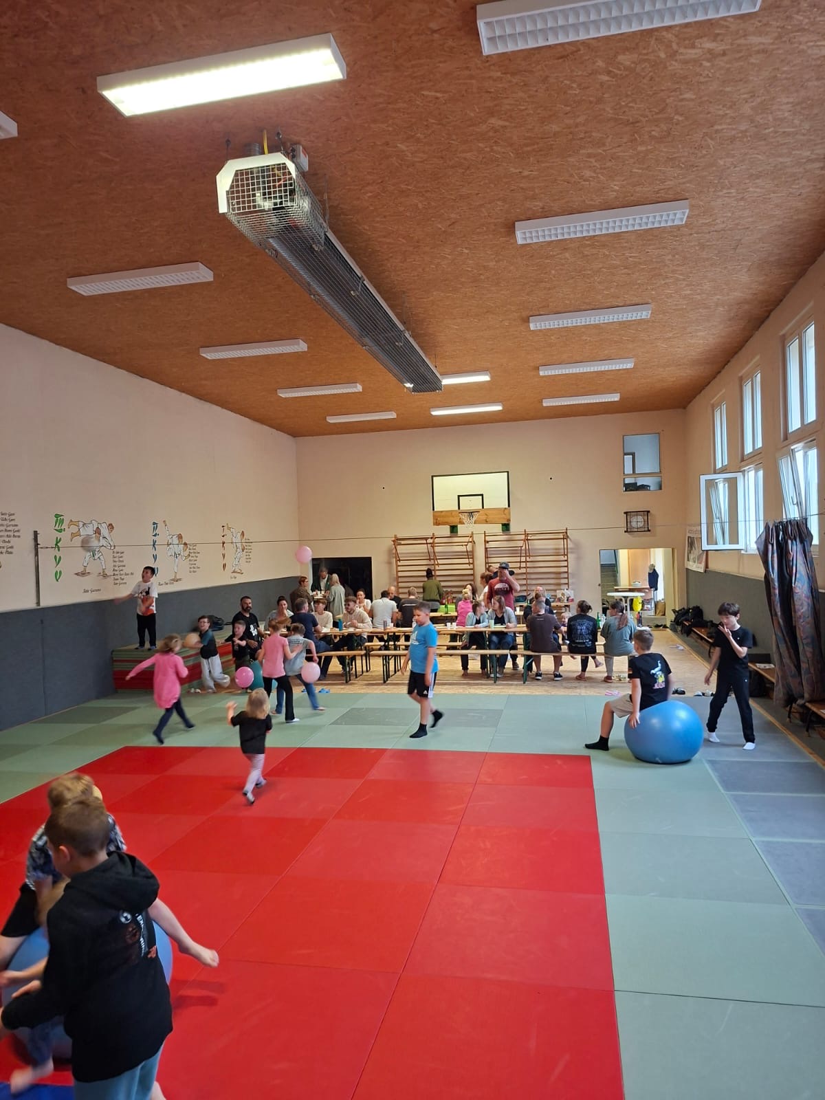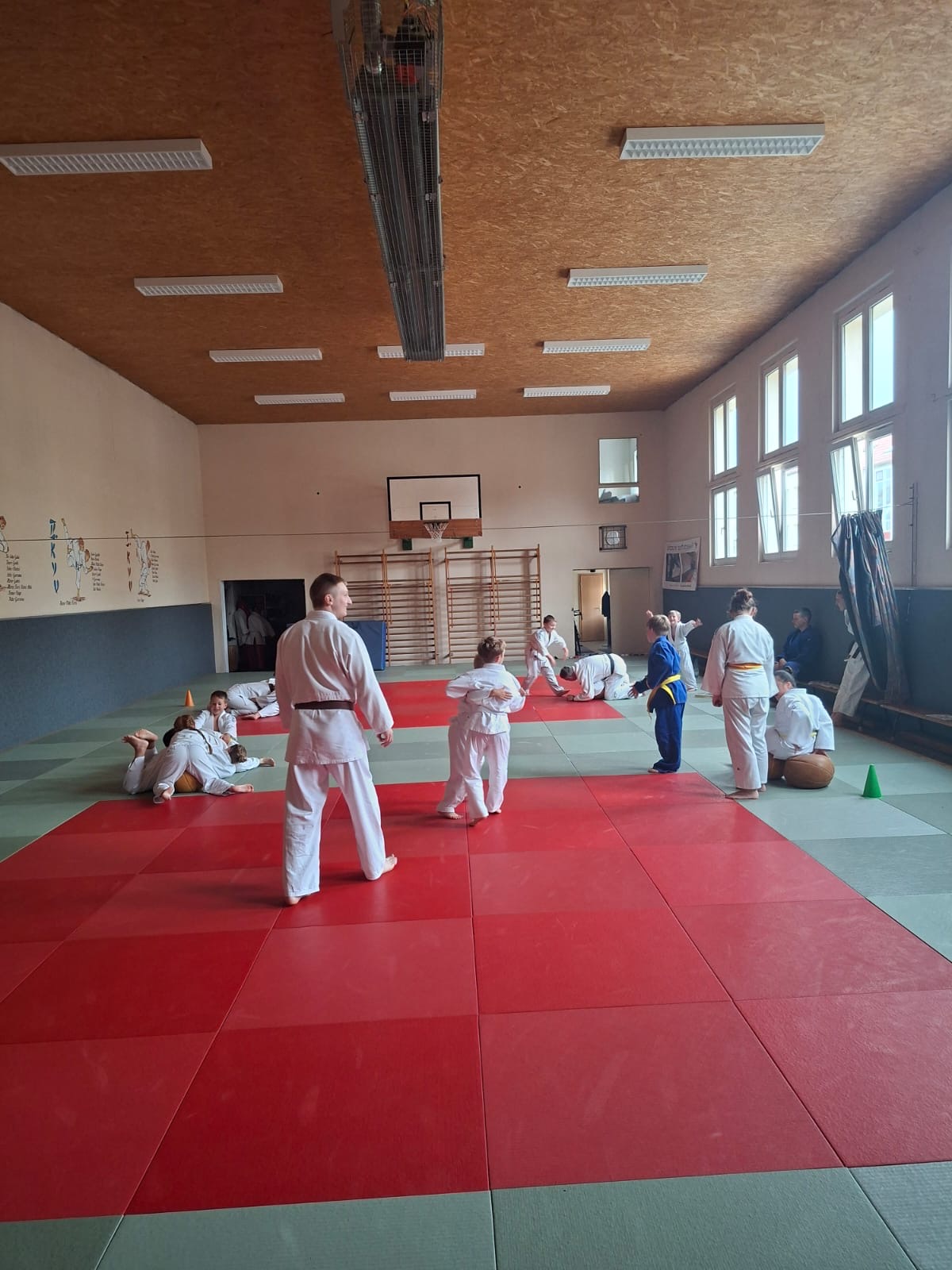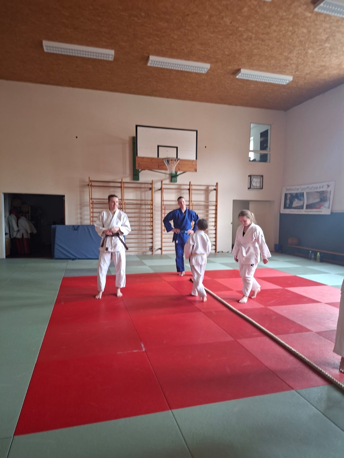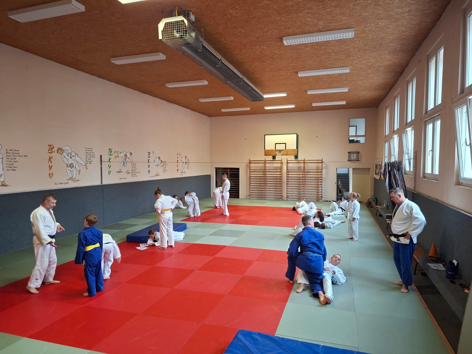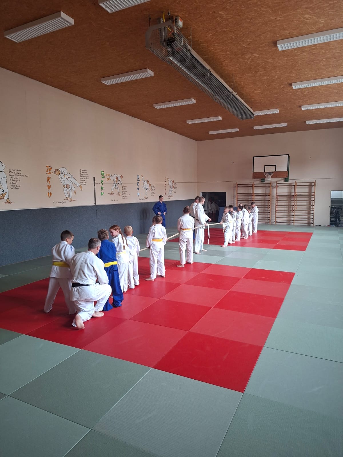 Nach dem obligatorischen Foto starteten die Kids mit vielen Spielen und Bewegung in die erste Trainingseinheit des Wochenendes. Im Anschluss hatten die Kids Gelegenheit, sich mit dem Kyuprogramm zu beschäftigen. Unter Anleitung der Trainer gingen die Kids sowohl in Gedanken als auch praktisch auf der Matte die verschiedenen Stand- und Bodentechniken durch, die für den nächsten Gürtel gefordert sind oder infrage kommen. So stand nach zwei Stunden nachdenken, probieren, Trainer löchern, aufgelockert durch viel Bewegung und Spiele, das Prüfungsprogramm für jeden Judoka fest.